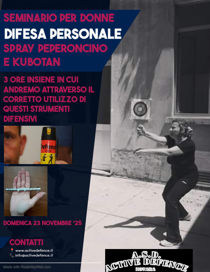 Domenica 23 Novembre dalle ore 9.30-12.30 saremo in via Oxilia 4, Novara per un approfondimento sull’utilizzo dello spray antiaggressione e del kubotan.
